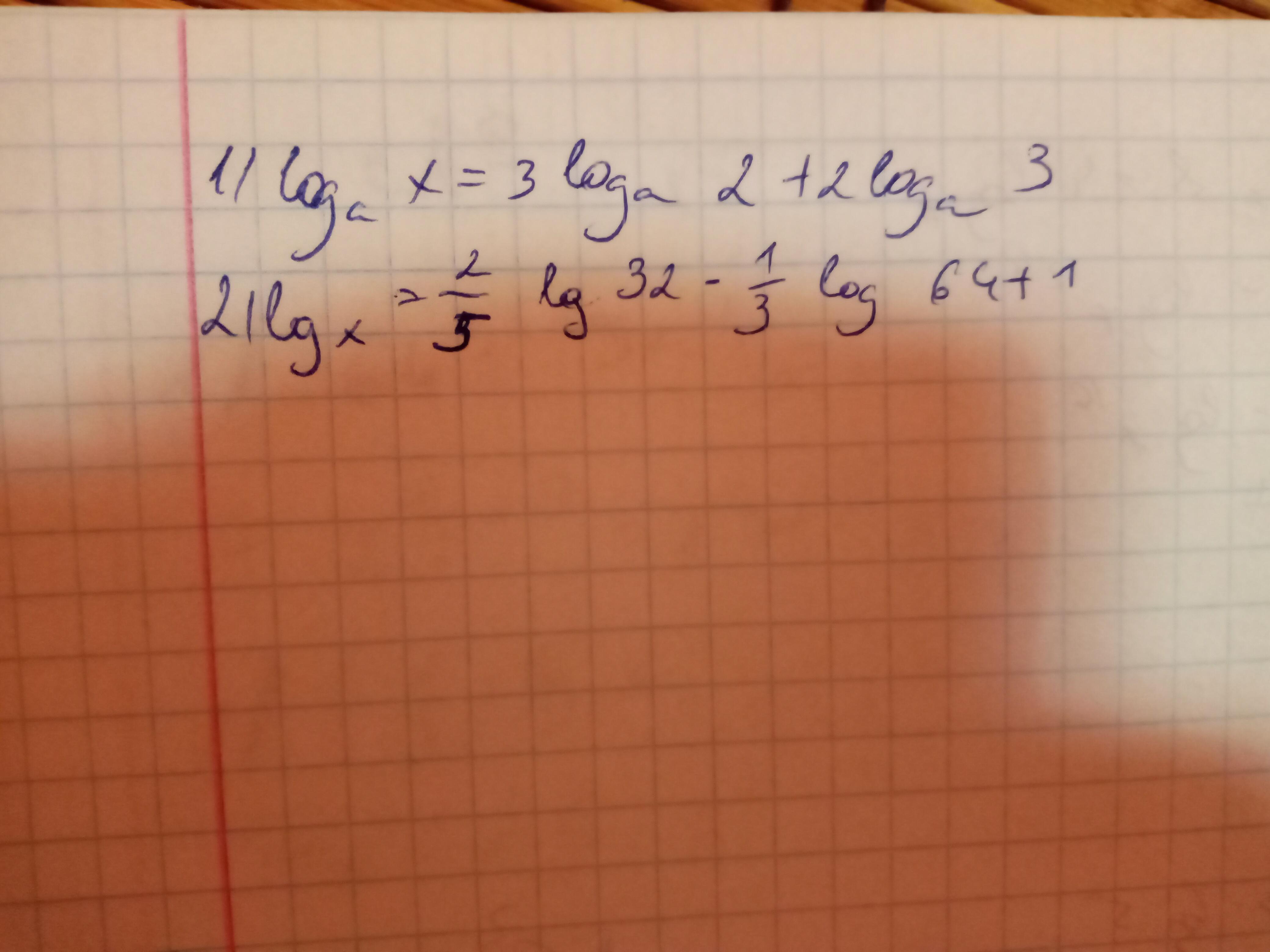 1)㏒a x = 3㏒a 2 + 2㏒a 3 ⇒ x = *