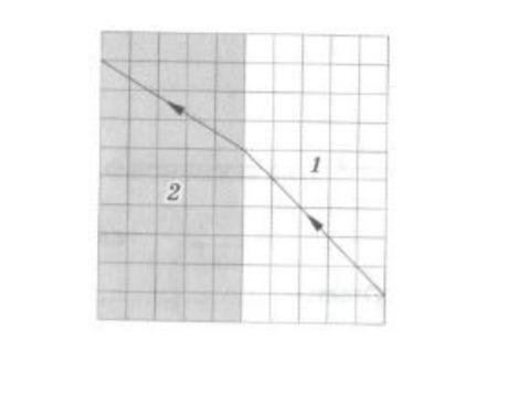 На рисунке показан световой луч, проходящий границу раздела двух сред. Определите относительный показатель преломления второй среды относительно первой. Дать полное развернутое решение.