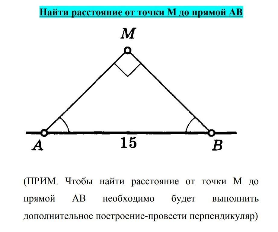 проведя дополнительное построение перпендикуляра MH угол АМH будет 90÷2 =45°.тогда МНA равно бедренный, АН=MH=15:2=7,5
