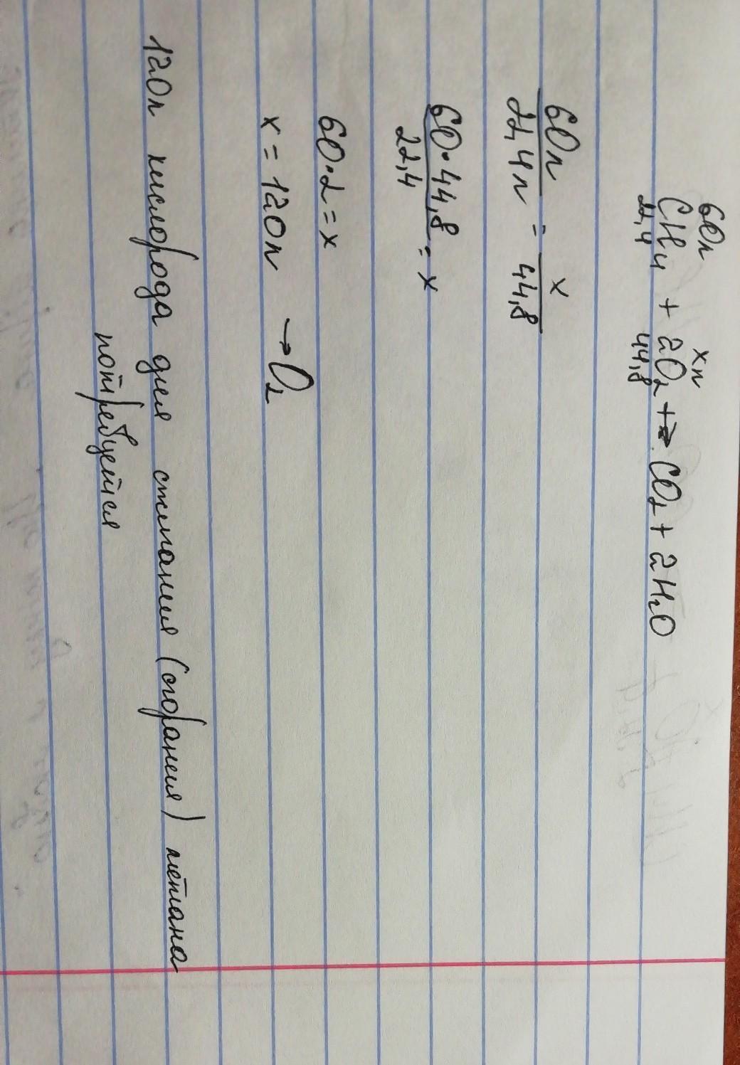 -Вычислите объем кислорода, воздуха, необходимый для сгорания 60л метана.