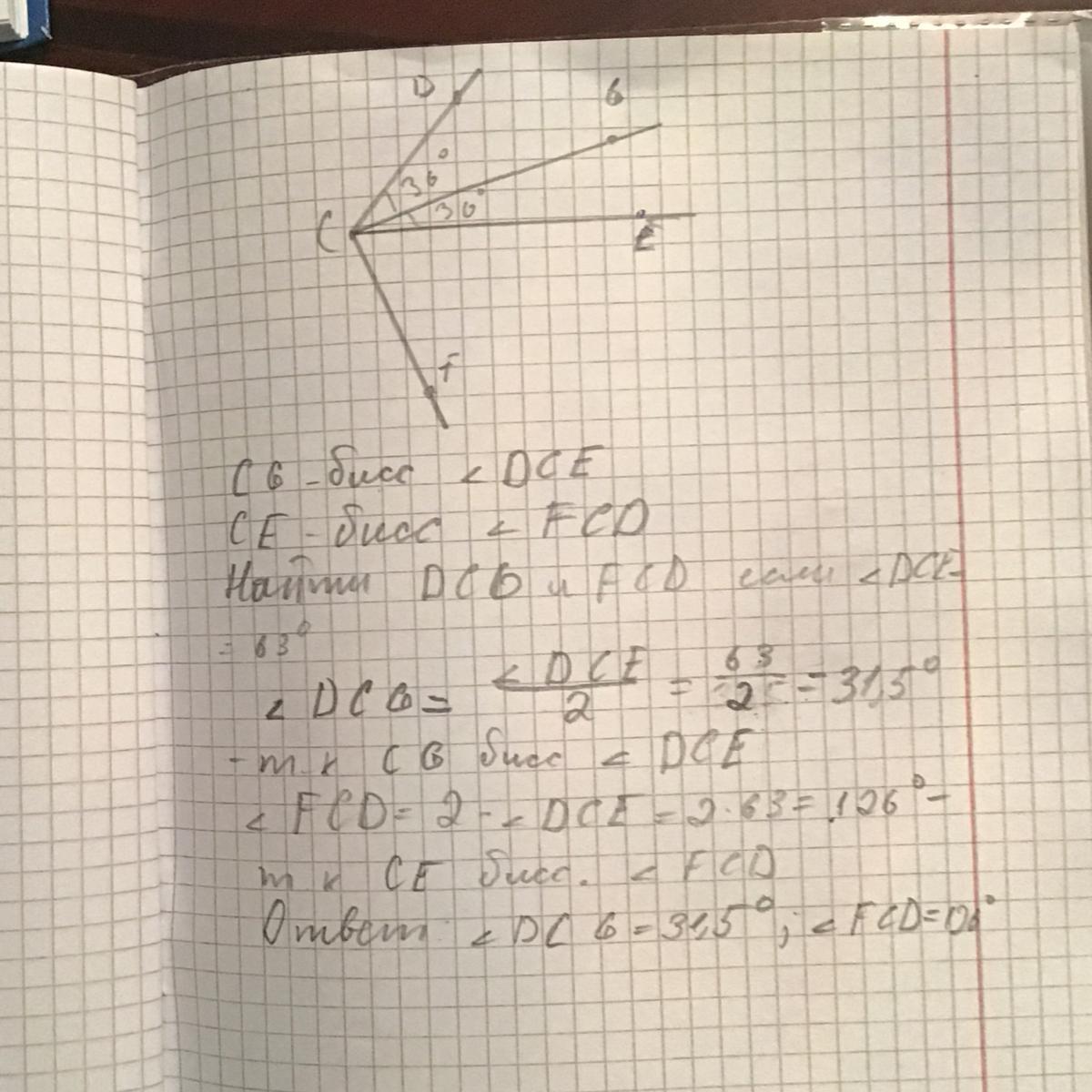 Ответь угол DCG=31,5 градусов; угол FCD=126 градусов.