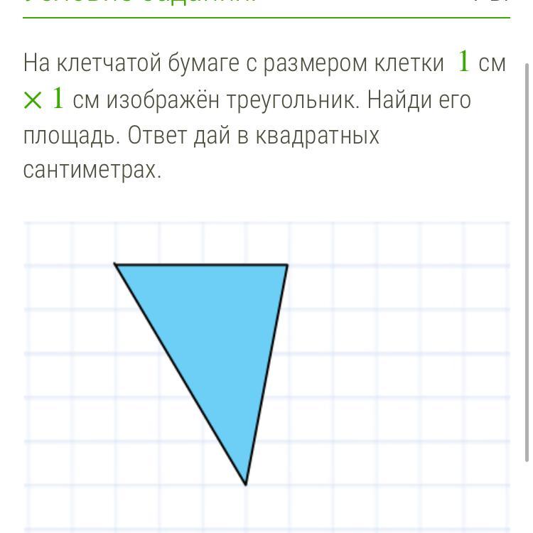 На клетчатой бумаге с размером клетки 1 см × 1 см изображён треугольник. Найди его площадь. Ответ дай в квадратных сантиметрах.