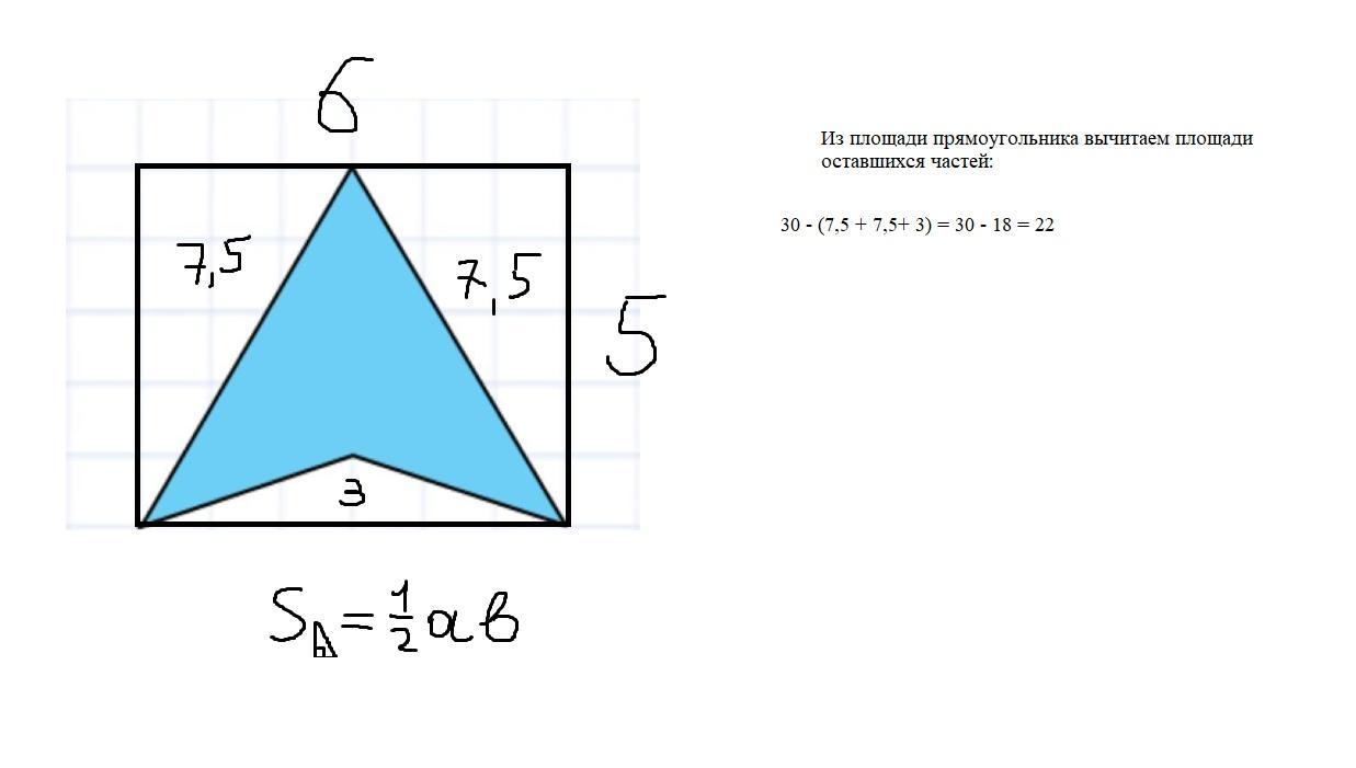 Найди площадь четырёхугольника, изображённого на клетчатой бумаге с размером клетки 1 см × 1 см (см. рис). Ответ дай в квадратных сантиметрах.