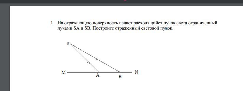 На отражающую поверхность падает расходящийся пучок света ограниченный
