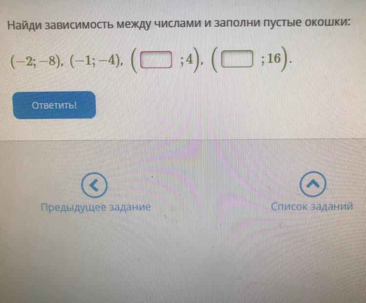 Найдите зависимость между числами и заполни пустые окошки