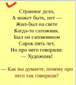 Ответ: Это о Сапожникове Андрее русском художнике. Его фамилия сапожников, а он художник