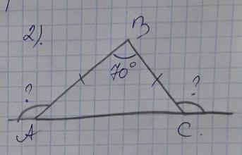 данно в = 70 ° А =? с =? решение 180 - 70 =110 2) 110:2=55это угол А и с по тому что они равнобедренные