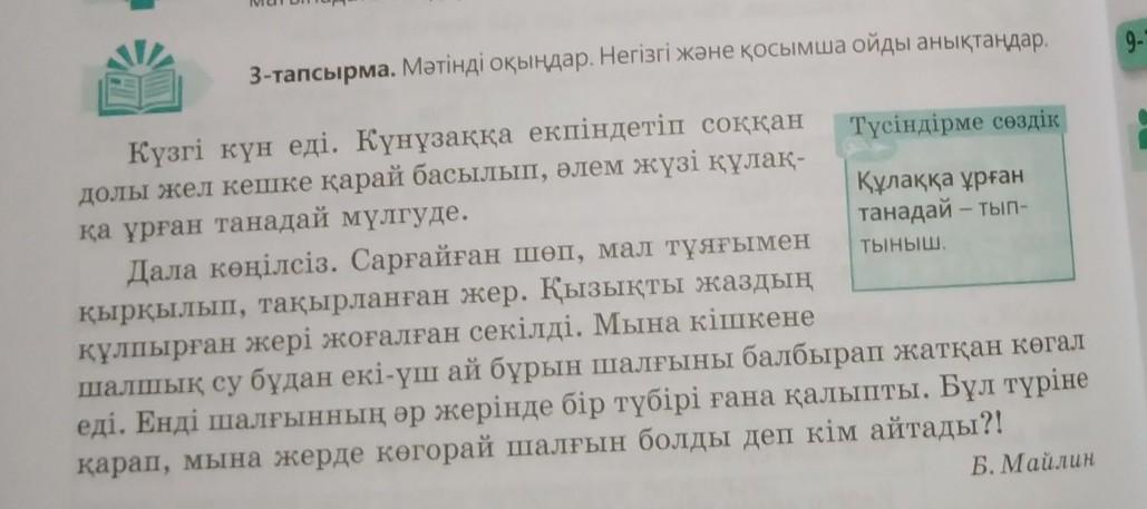 3-тапсырма. Мәтінді оқыңдар. Негізгі және қосымша ойды анықтаңдар.
