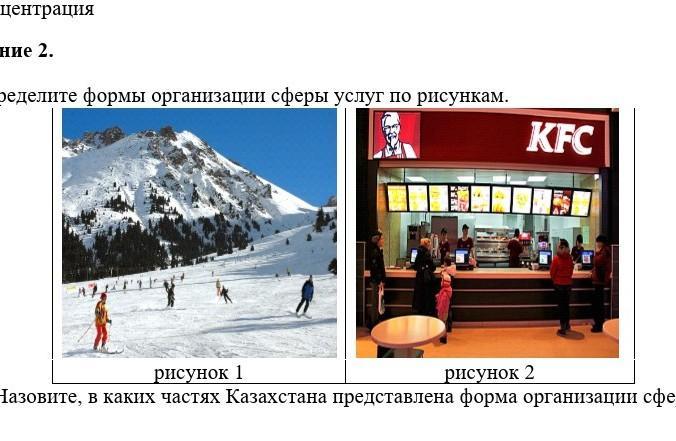 (a) Назовите, в каких частях Казахстана представлена форма организации сферы услуг рисунка 1.