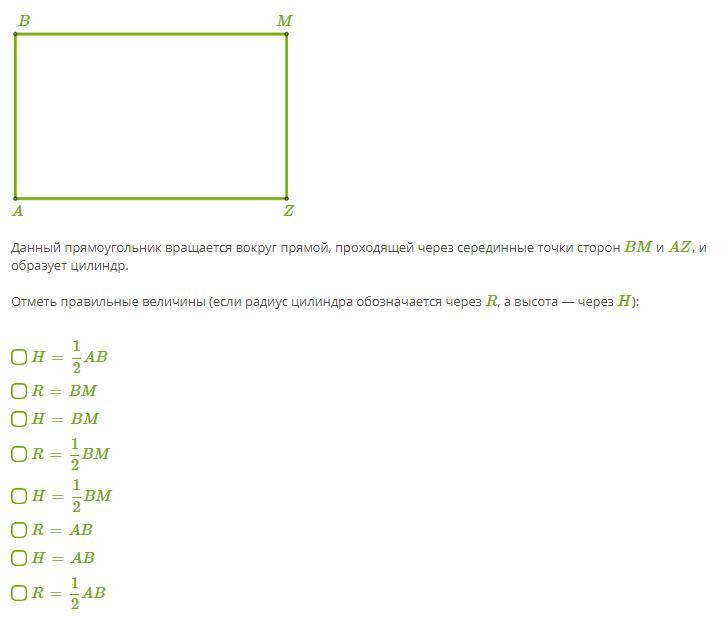 Радиус данного цилиндра равен половине длины прямоугольника, высота цилиндра равна ширине прямоугольника.