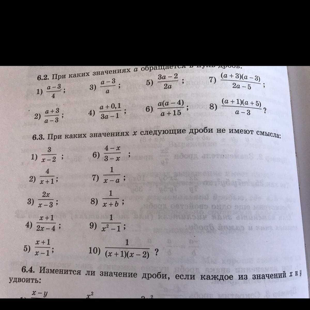При каких значениях x следующие дроби не имеют смысла: ( упр. 6.3) помогите