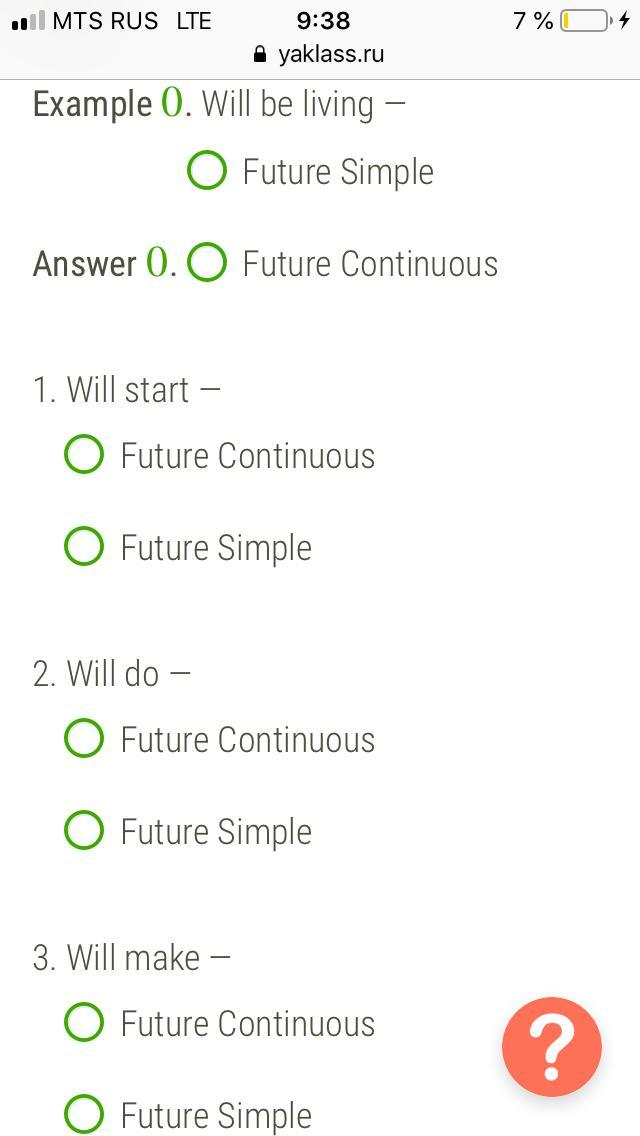 Read these verb forms and identify the tense. You should choose Future Simple or Future Continuous for these verb forms.
