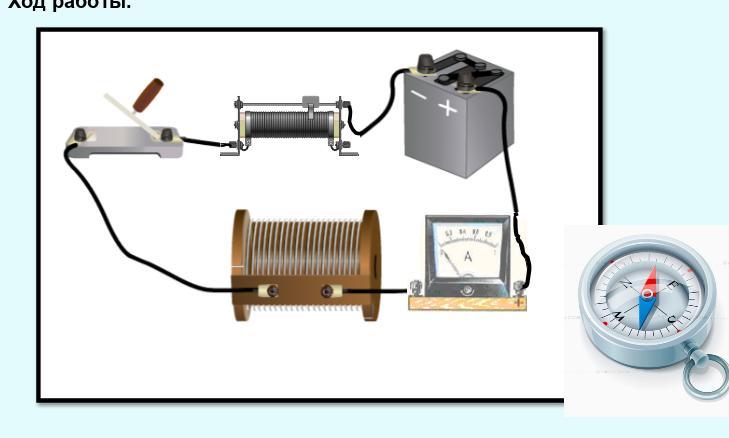 Начертите схему цепи и обозначьте полюсы катушки на рисунке