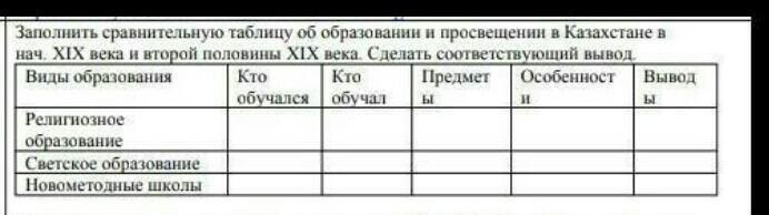 заполни сравнительную таблицу об образовании и просвещении в Казахстане в нач. XIX века и второй половины XIX века сделать соответствующий вывод