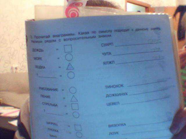 прочитай анограммы.какая по смыслу подходит к данному значку.Напиши рядом с вопросительным знаком.
