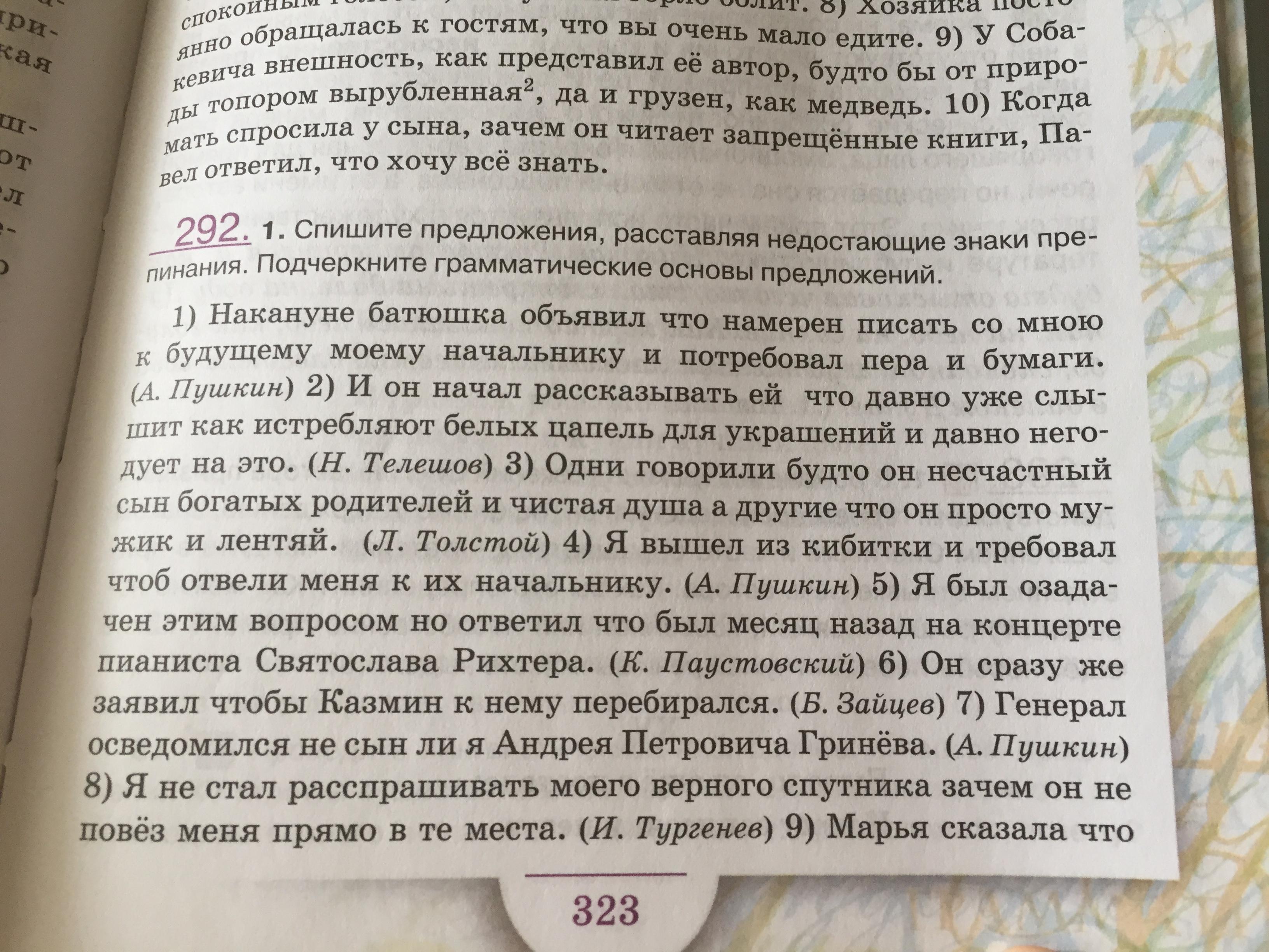 Ответ:объявил, что г/з батюшка (подежащее) потребовал, объявил (сказуемые) 2) и он начал рассказывать ей, что давно уже слышит, как
