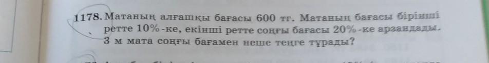 1178. Матаның алғашқы бағасы 600 тг. Матаның бағасы бірінші