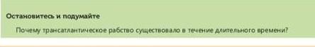 Почему трансатлантическая рабство существовало в течение длительного времени помогите пожалуйста