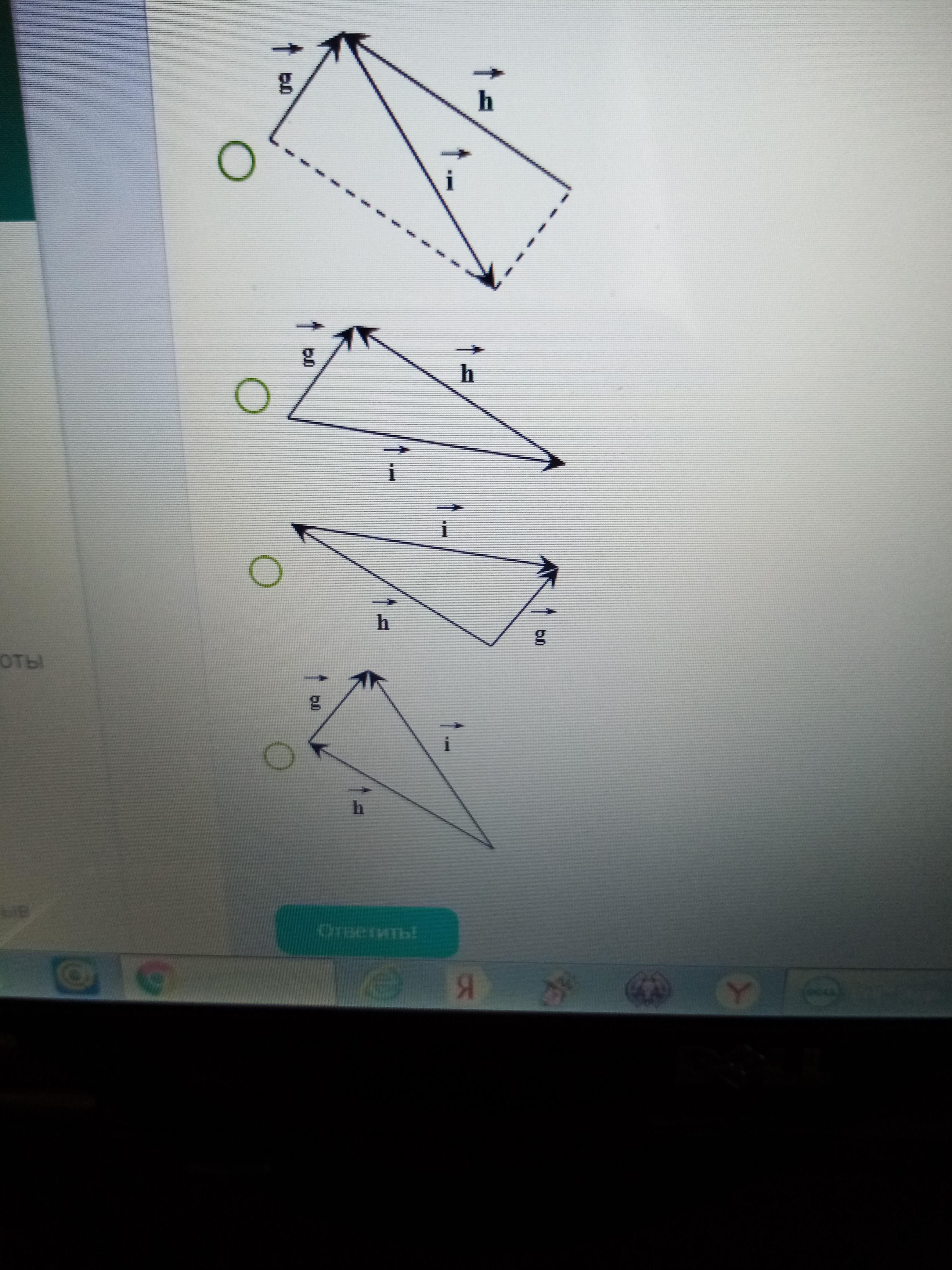 Даны векторы g и h. На каком из данных рисунков построена разность векторов g и h, т. е. вектор g-h?