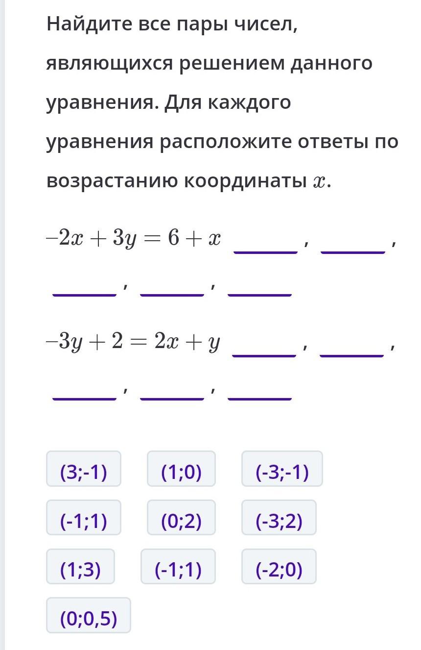 (-3;-1), (-1;1), (0;2), (1;3), (-1;1), (-2;0)