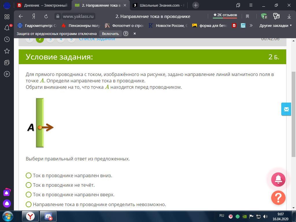 По правилу правой руки - обхватывая проводник с током четыре пальца указывают на направление линий магнитной индукции, а большой палец укажет на направление тока в проводнике.