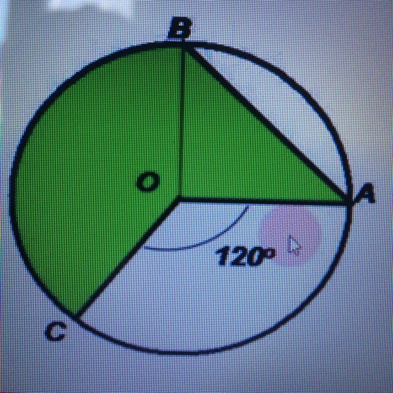 Теперь рассмотрим сектор COB. Очевидно что угол между отрезками CO и OB равен 360 - 120 - 90 = 150°