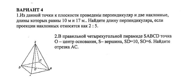 Помогите пожалуйста по математике, тема: Перпендикуляр и наклонная.