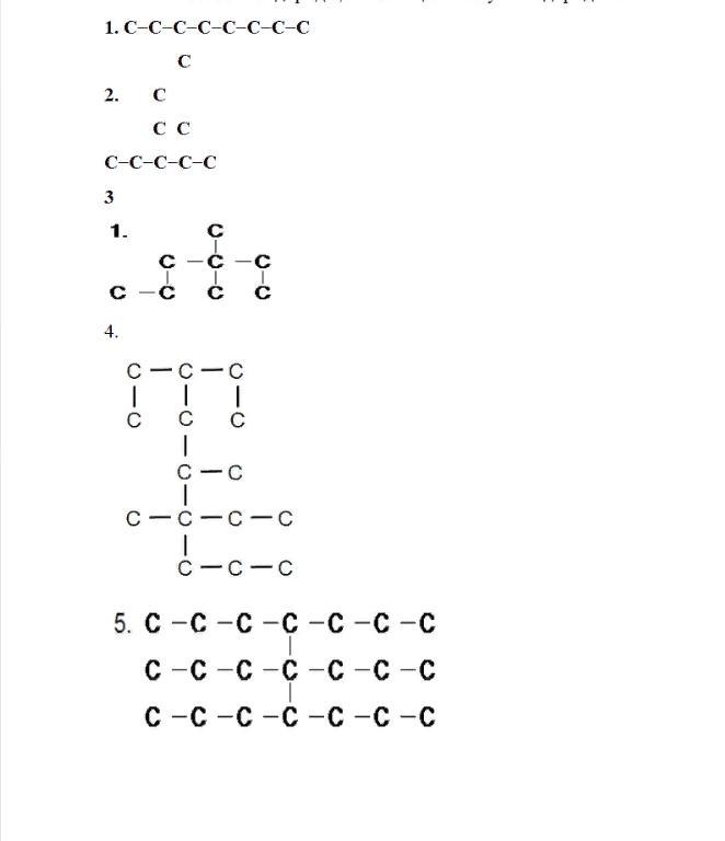 Помогите, пожалуйста. Нужно расставить водороды и назвать цепочки углеводородов. Спасибо.