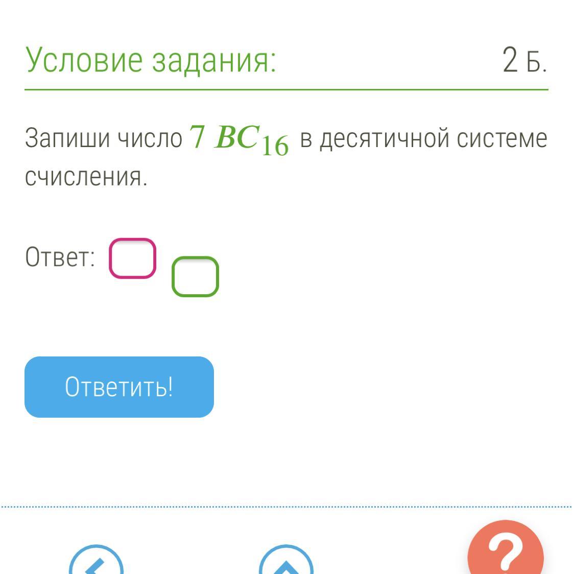 7BC^16 = 7∙16^2+11∙16^1+12∙16^0 = 1792+176+12 = 1980^10