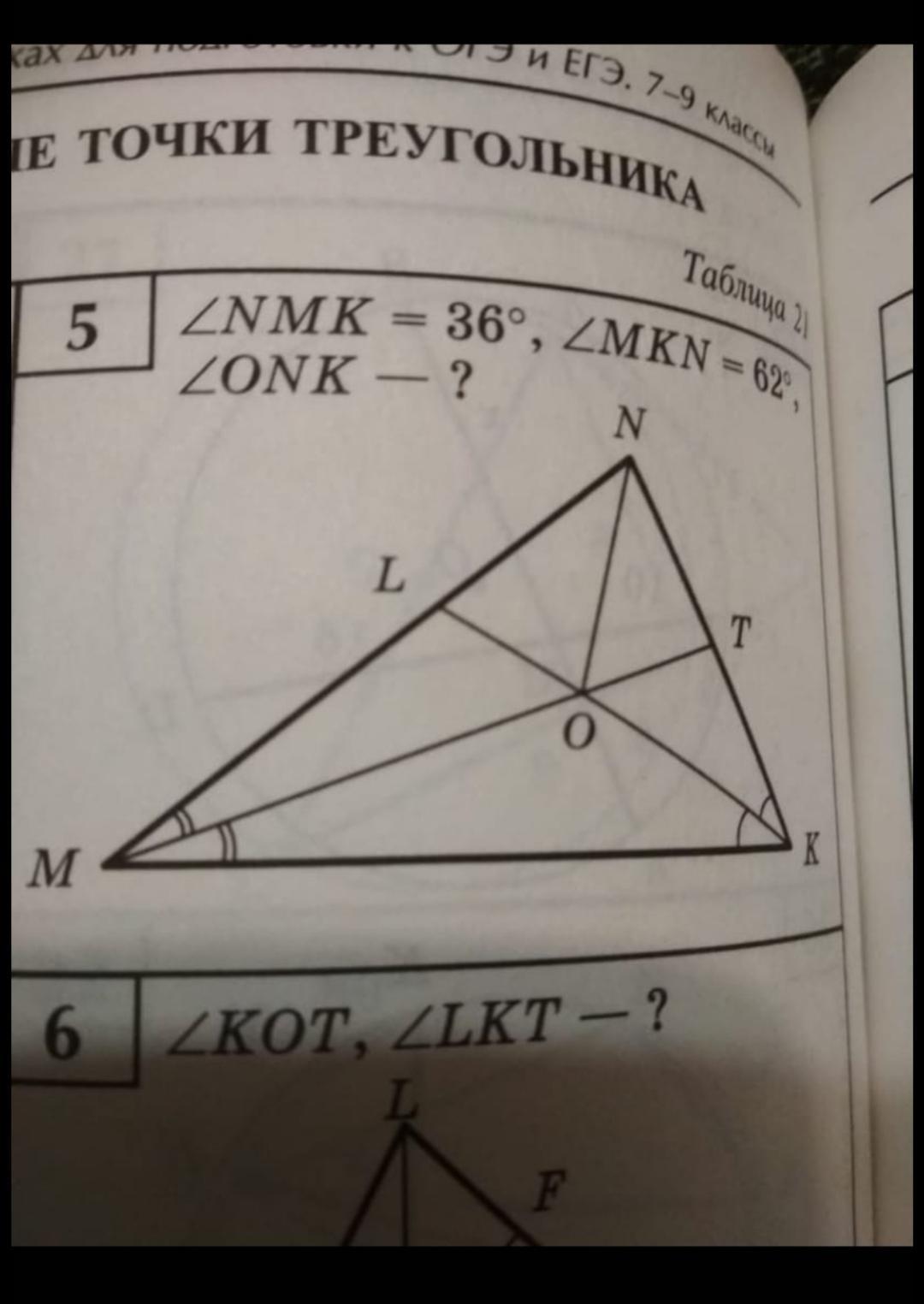Ответ:угол ONK -NMK-MKN=ONK-36-62