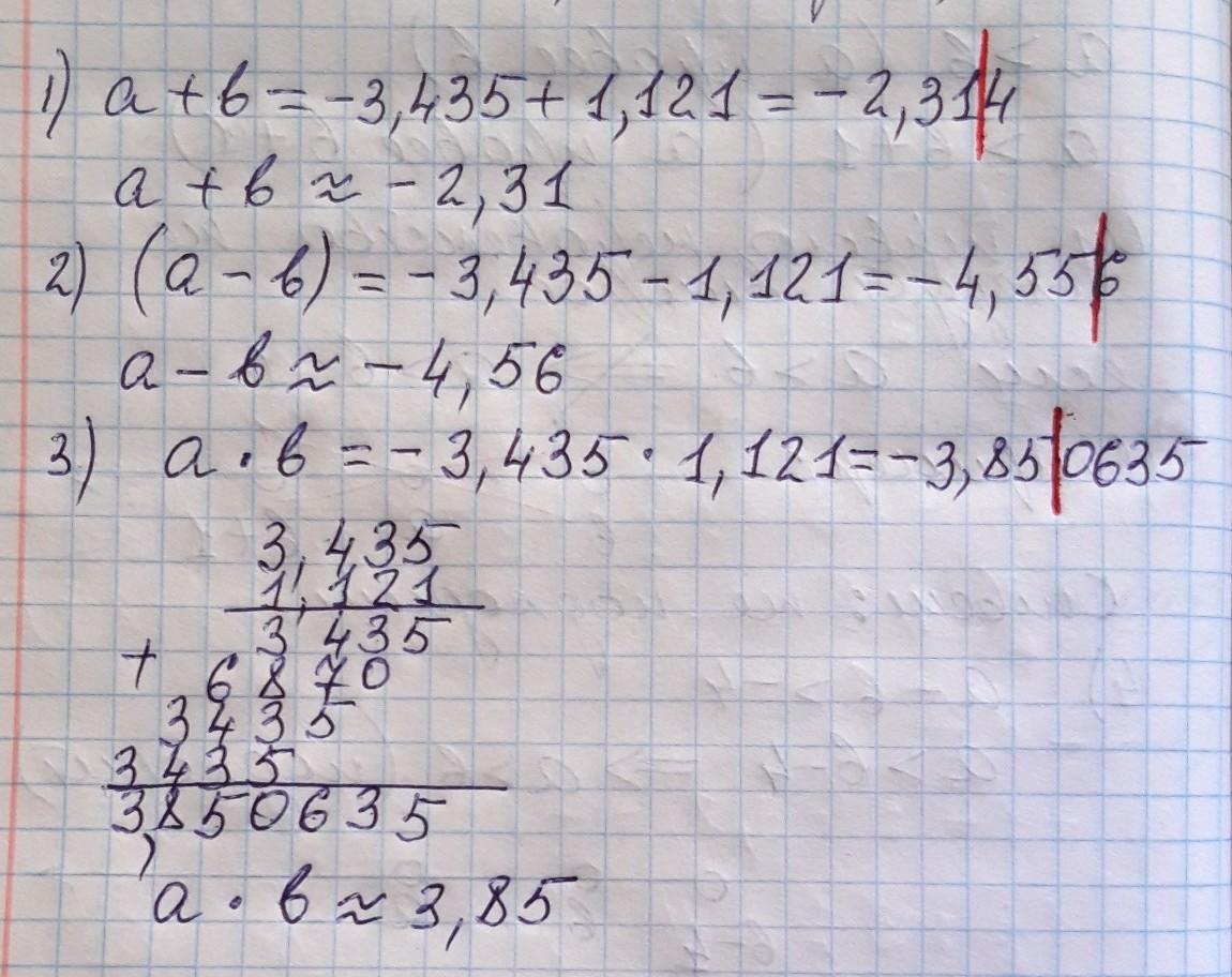 (a+b)=-3.345+1.121=-2.224. Округляем: -2.22