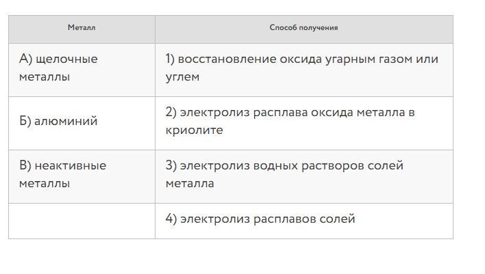 Установите соответствие между металлом/ами и промышленным способом его/их получения:
