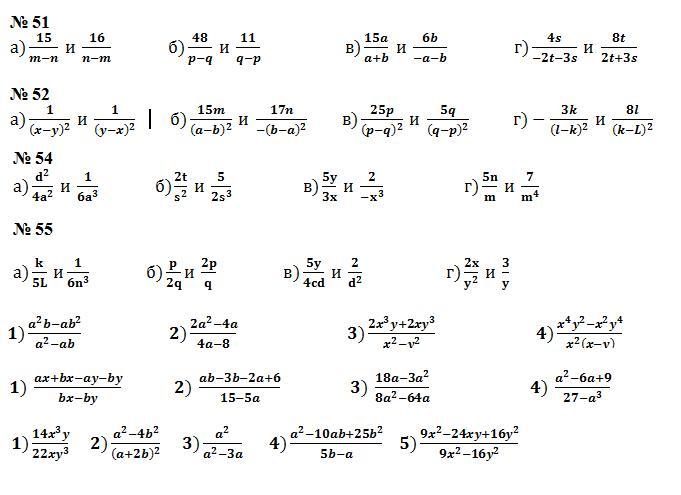 51-55 приведите к общему знаменателю 1) Сократите дроби 40 баллов