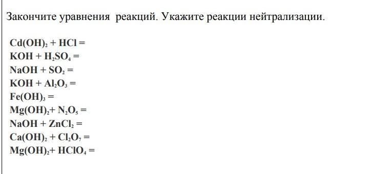 Закончите уравнения реакций. Укажите реакции нейтрализации​