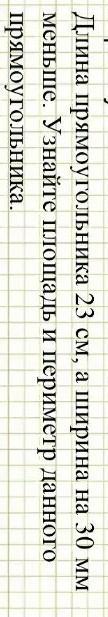 Длина прямоугольника 23 см, а ширина на 30 мм меньше. УЗнайте площадь и периметр данного прямоугольника.Помагите