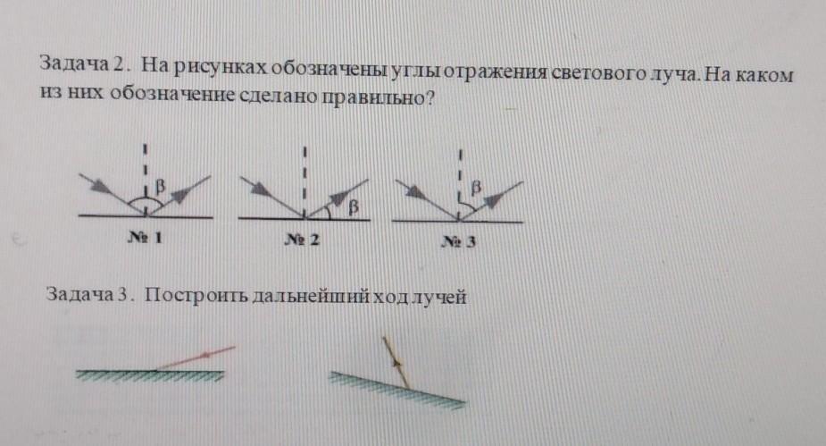 Задача 2. Угол можду падающим и отраженным от плоского зеркала лучами равен 60°. Чему равен угол отражения? Сделайте поясняющий чертёж.
