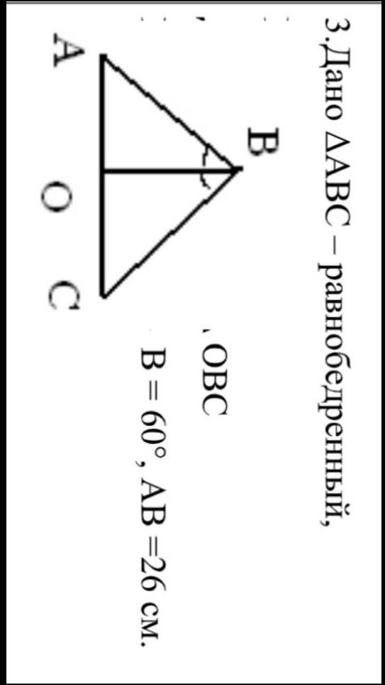 Дано треугольник ABC - равнобедренный OBC, B=60° AB=26см.
