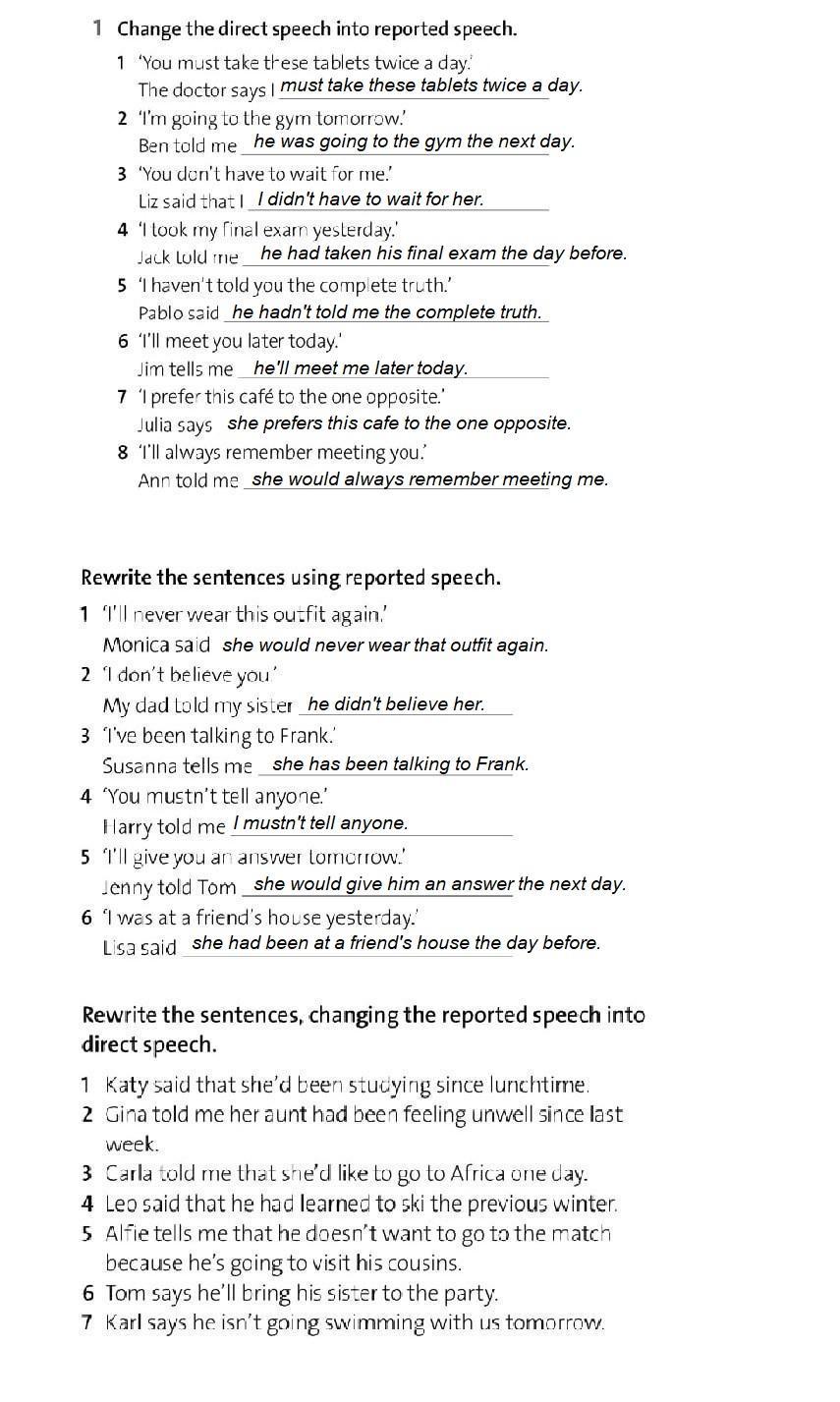 2 Gina said to me, "My aunt has been feeling unwell since last week."