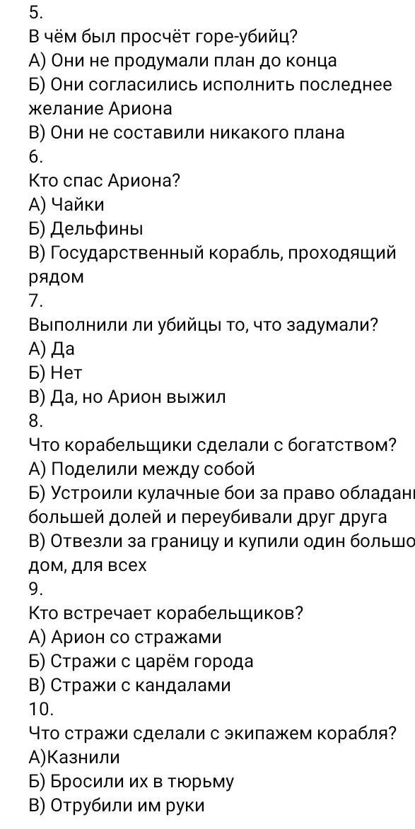 Легенда об Арионе кто читал ? сделайте у меня тест 18 баллов​
