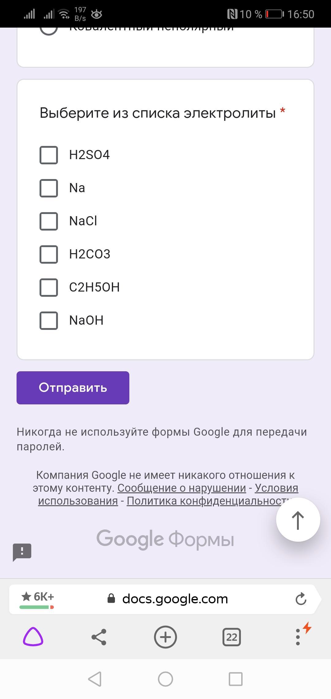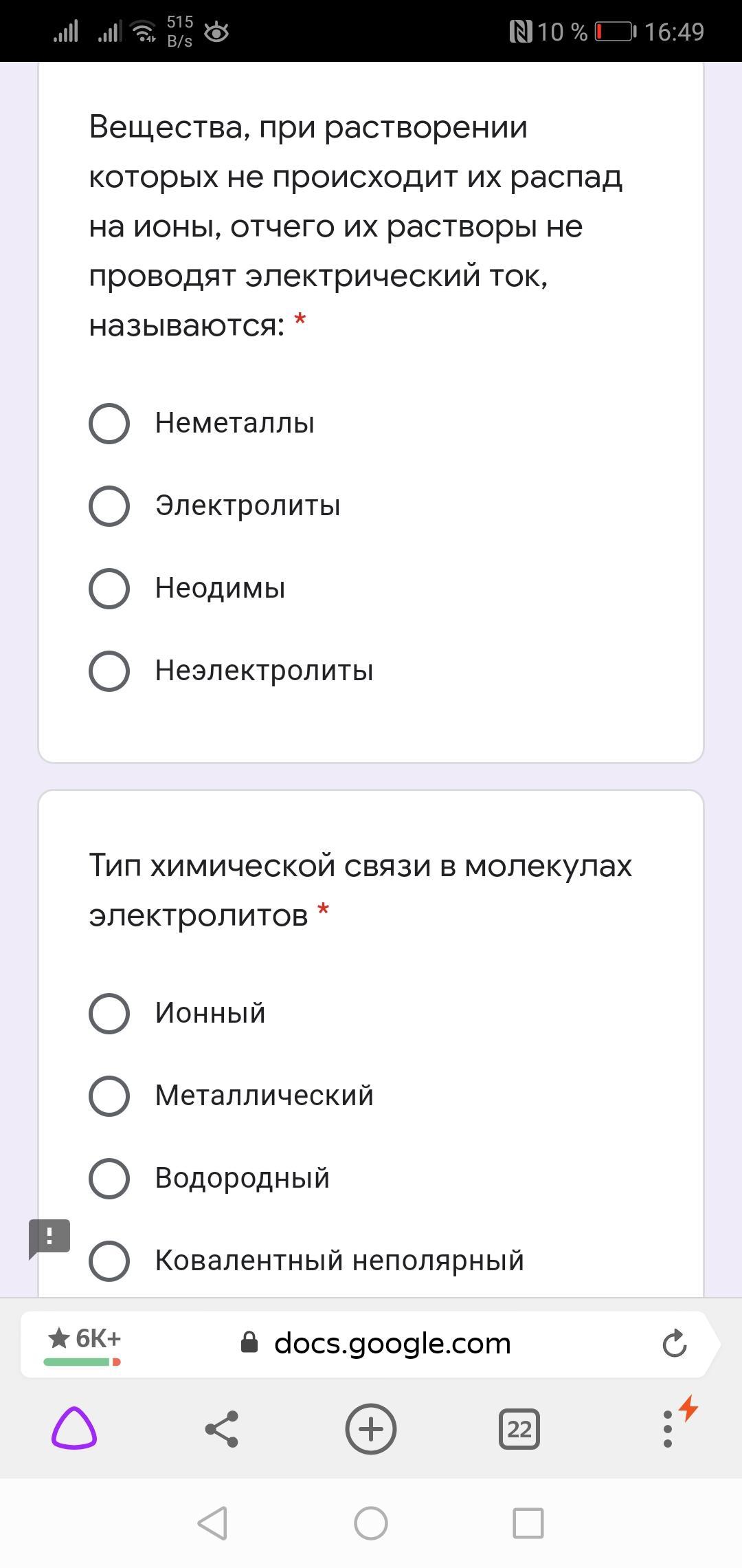 Помогите пожалуйста с тестом по химии на тему Электролиты и Неэлектролиты.
