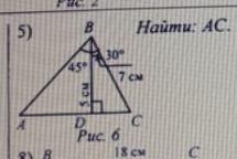 ∠A + ∠B = 90° (как острые углы в прямоугольном Δ) ⇒ ∠A = 90 - 45 = 45°; ∠A = ∠B ⇒ Δ ABD - р/б ⇒ BD = AD = 5 см