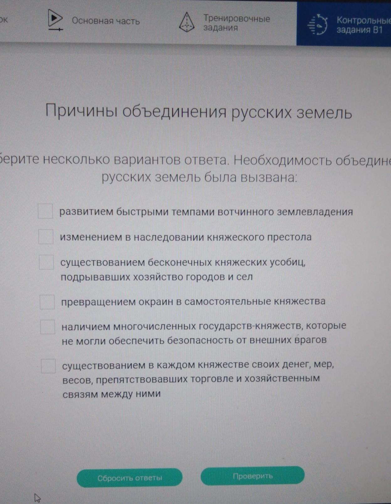 6) существованием в каждом княжества своих денег мер весов препятствовавших торговле и хозяйственных связям между ними