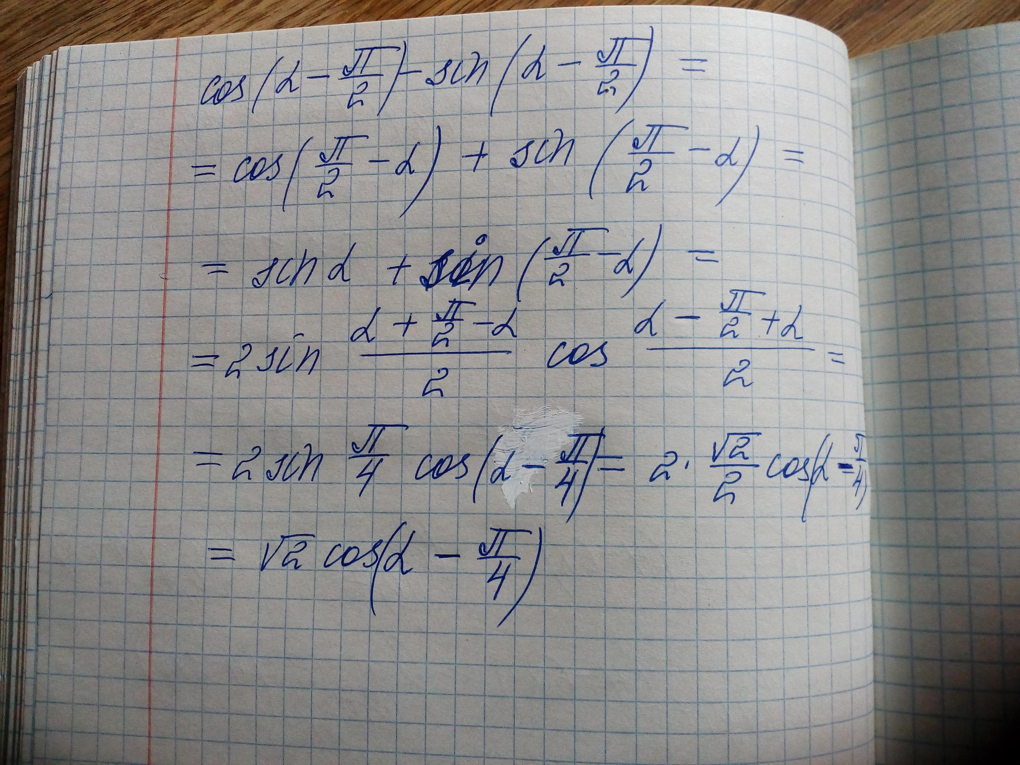 2sinπ/4*cos(a-π/4)=√2cos(a-π/4).