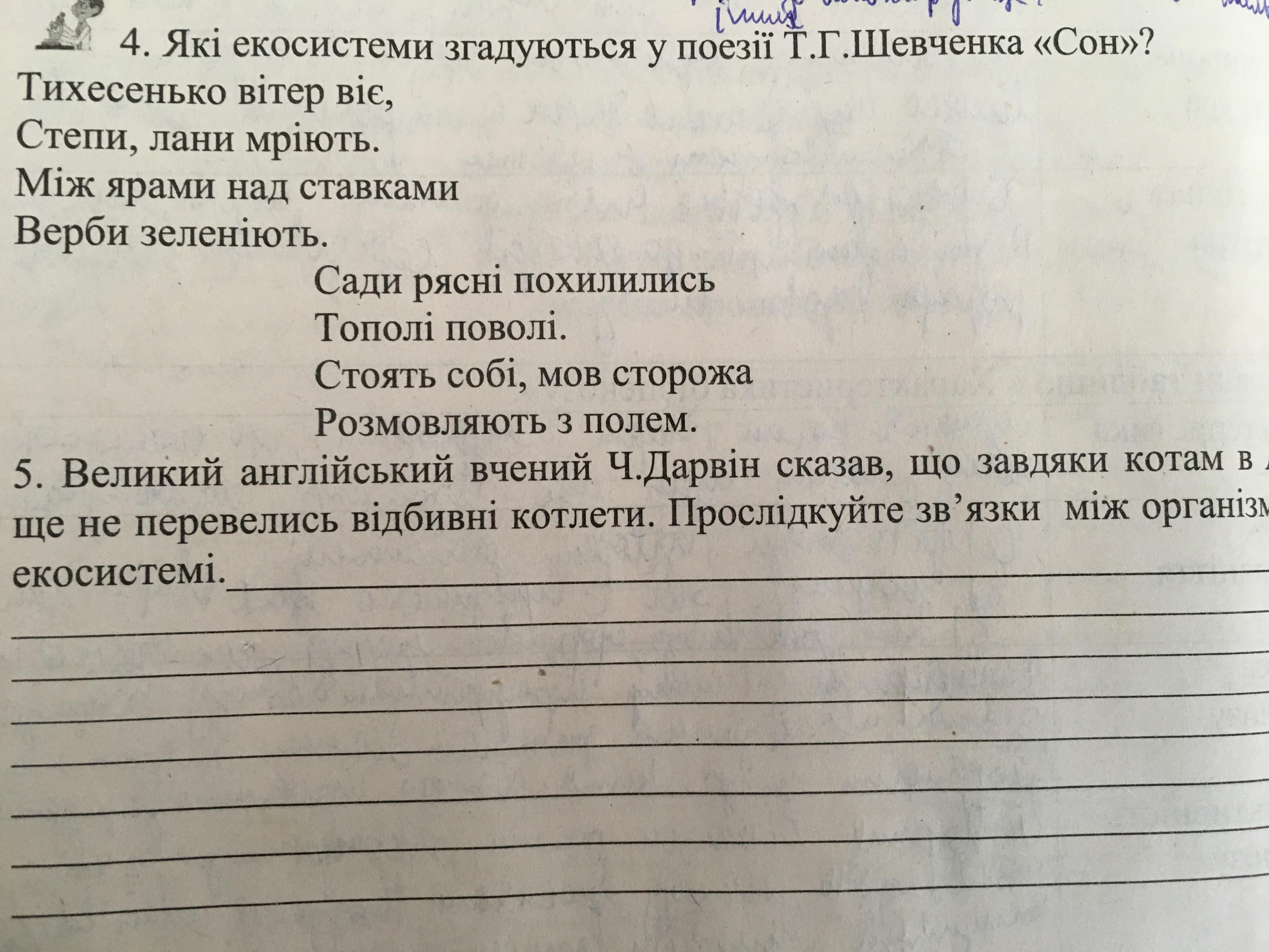 Какие экосистемы упоминаются у поэзии Шевченка Сон: