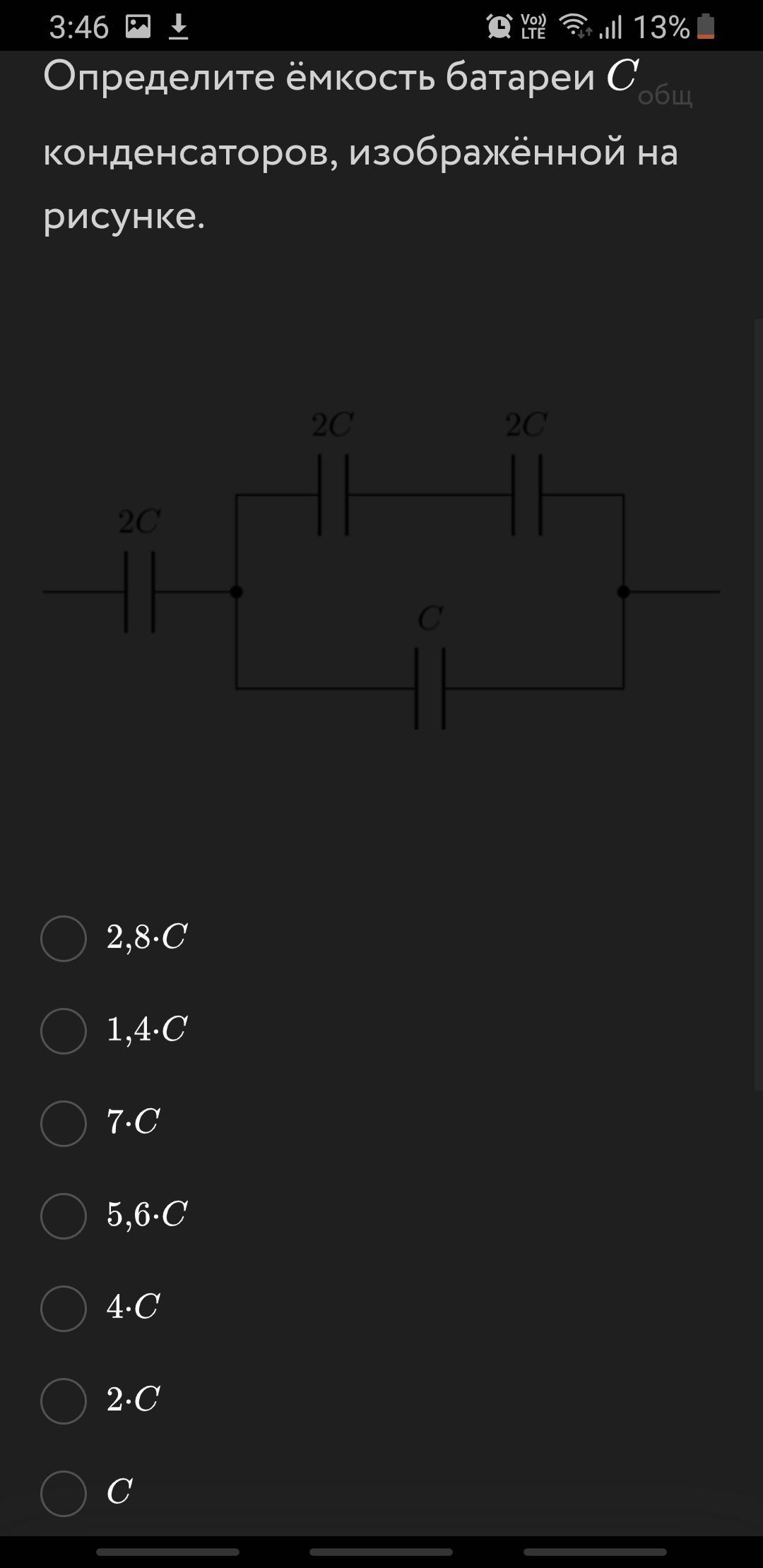 Определите ёмкость батареи С(общ) конденсаторов, изображённой на рисунке.