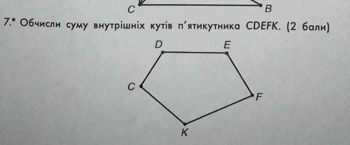 Знайди суму внутрішніх сторін п'ятикутника.