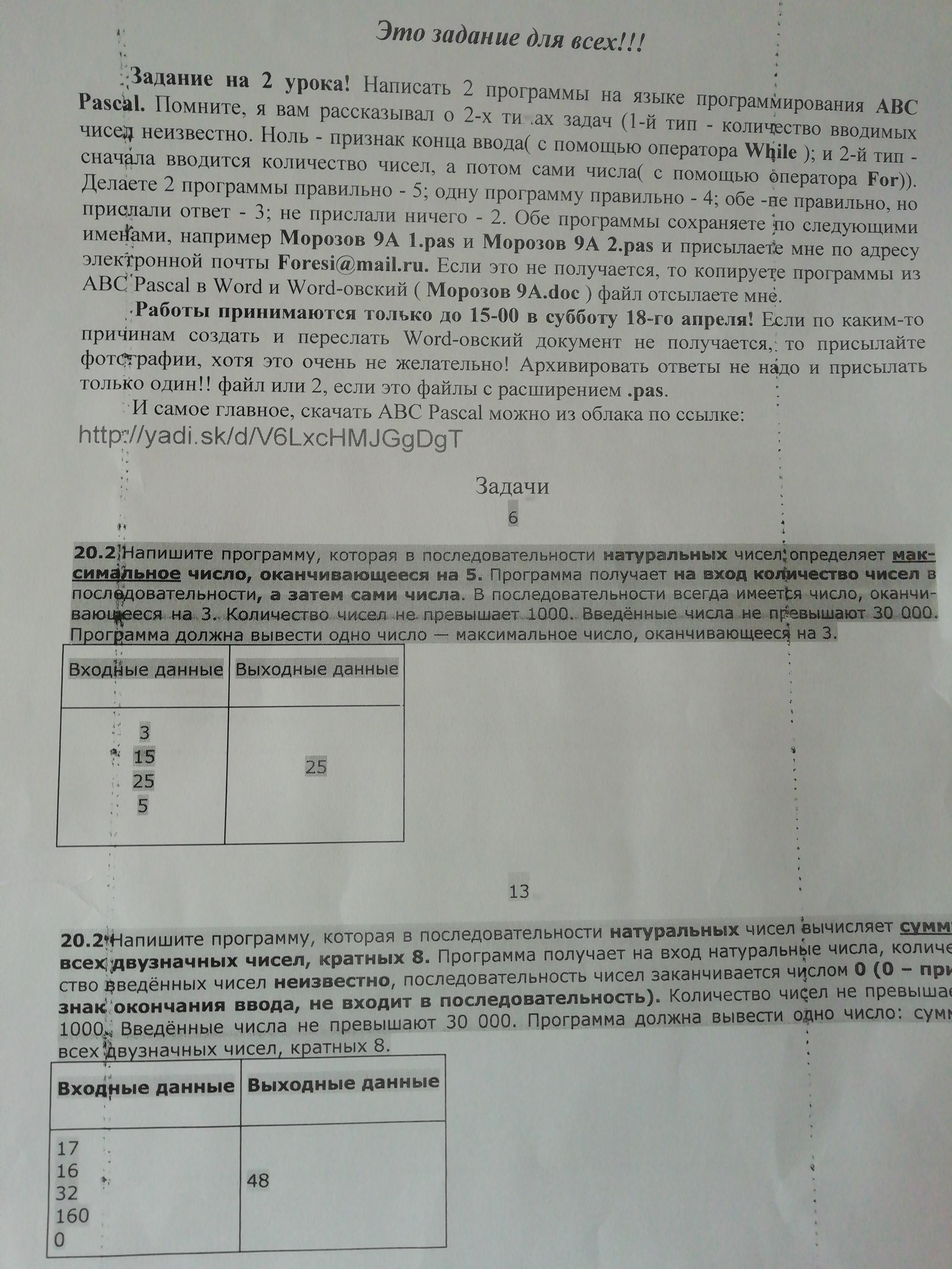 Напишите программу, которая в последовательности натуральных чисел определят максимальное число, оканчивающееся на 5. Программа получает на вход количество чисел в последовательности, а зачтем сами числа. В последовательности всегда имеется число, оканчивающееся на 3. Количество чисел не превышает 1000. Введённые числа не превышают 30.000. Программа должна вывести одно число - максимальное число, оканчивающееся на 3.