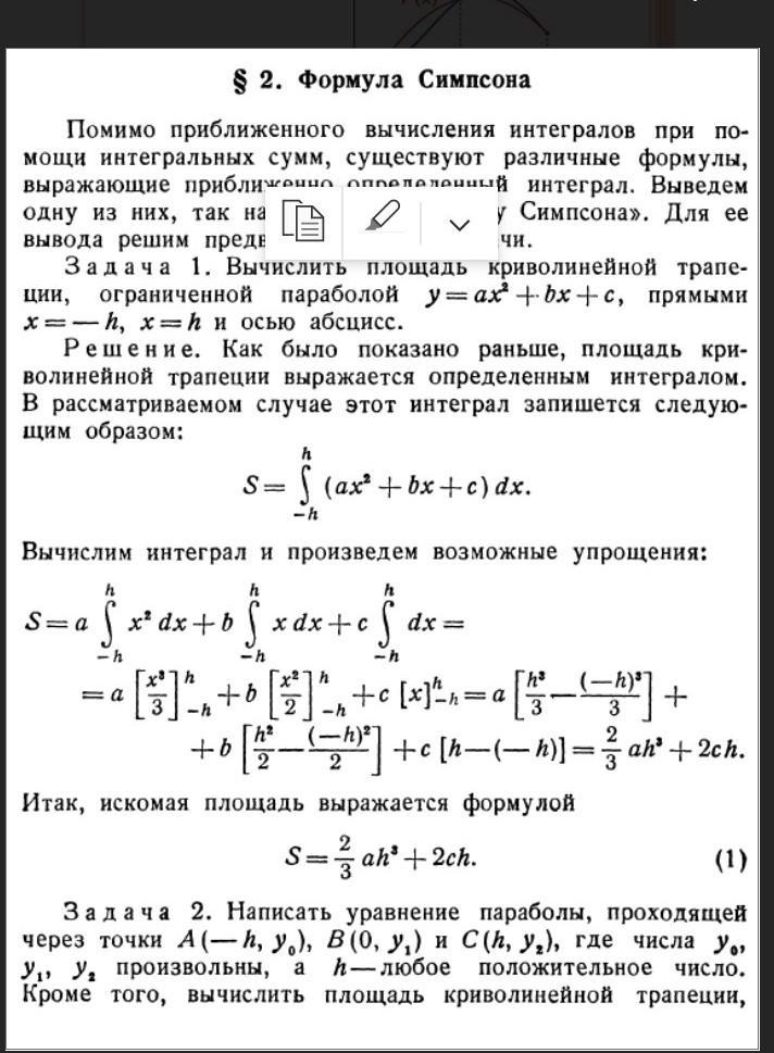 Написать уравнение параболы, проходящей через точки A(-h, y0), B(0, y1) и C(h, у2), где числа у0, y1,y2 произвольны, а-h любое положительное число. Кроме того, вычислить площадь криволинейной трапеции,