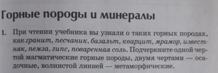 осадочные: поваренная соль, песчанник, известняк, гипс