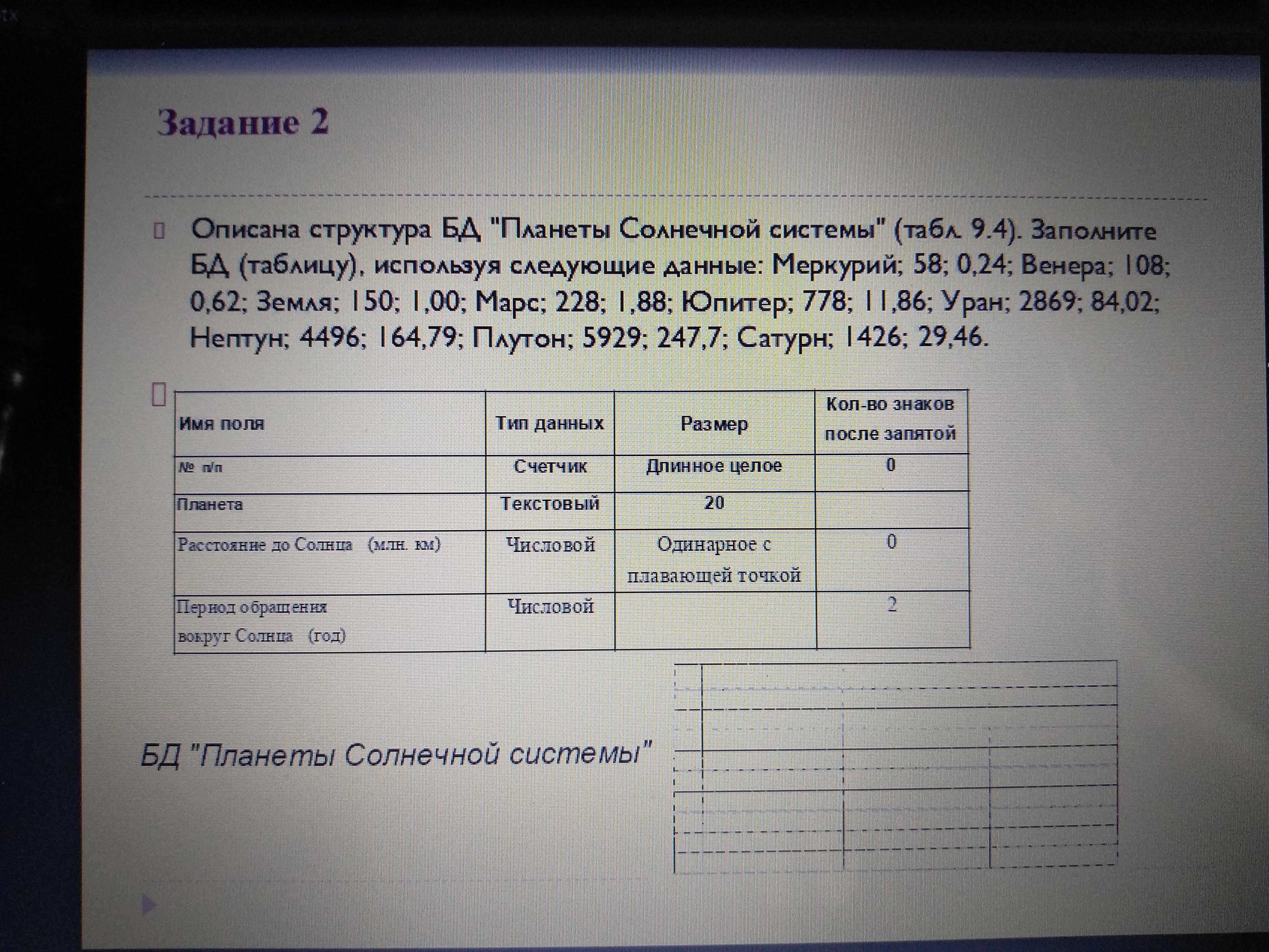 №ПП Планета Расстояние до Солнца Время обращения во круг Солнца